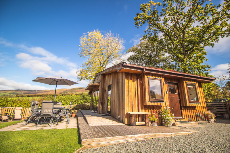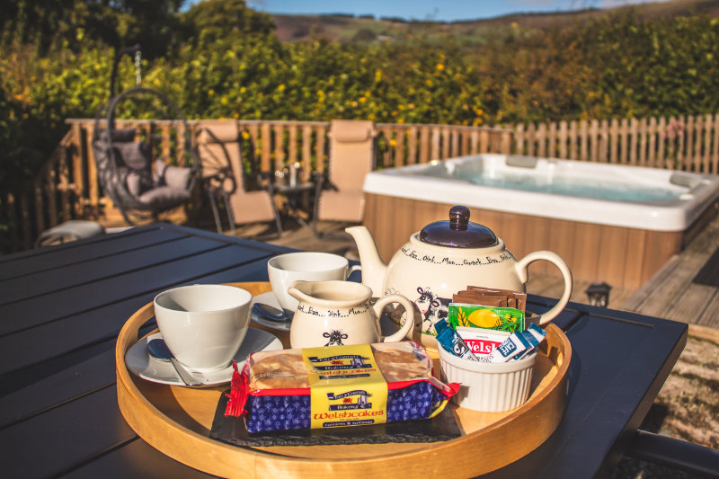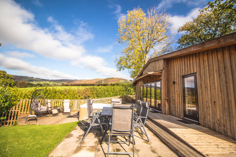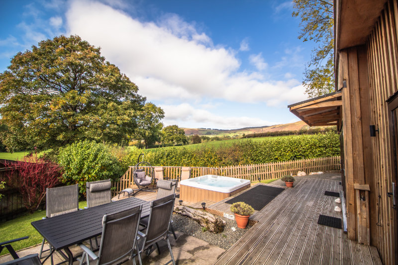 Luxury Lodge accommodation with private Hot Tub. Nestled in Mid-Wales countryside, surrounded by the Cambrian Mountains. It is your Home from Home, with fully equipped amenities and an enclosed garden. Perfect for a romantic break or a family getaway.